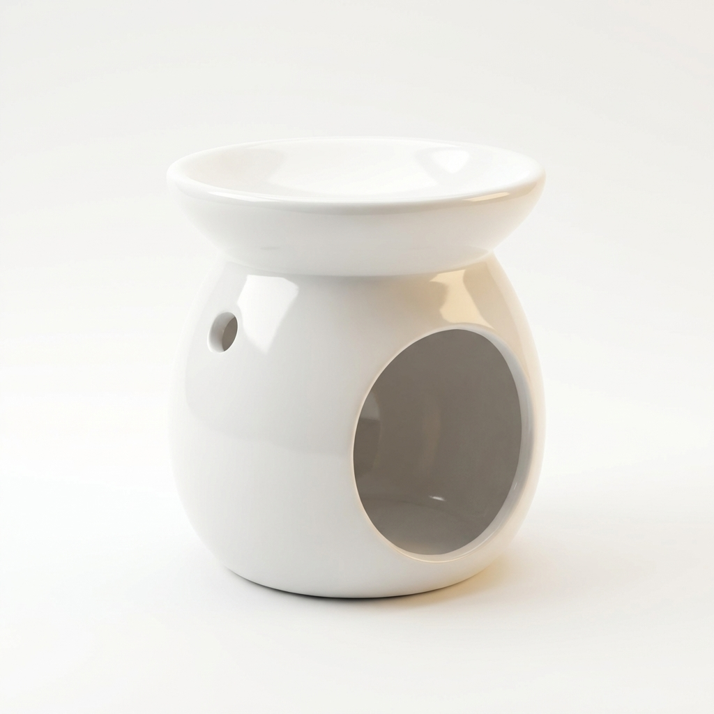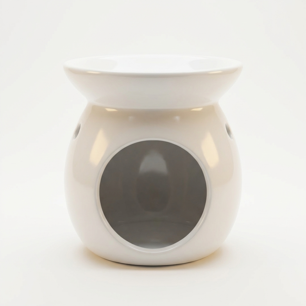 מבער קרמי לבן בגימור מבריק , בעיצוב עגול ונקי.